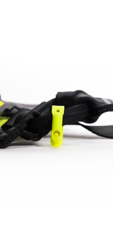 This tag works well on a harness's gear loops, or webbing 27mm and under.
