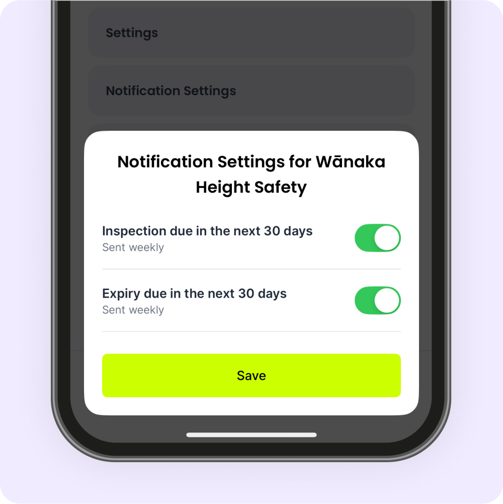 Never miss an inspection with notifications for expiry dates or inspections due based on date of manufacture or date of first use.